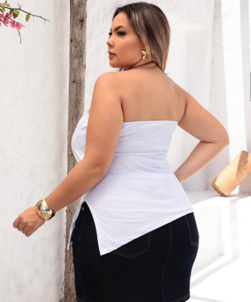 Com design assimétrico e tomara que caia, essa peça une sensualidade e elegância, sendo perfeita para compor looks casuais ou sofisticados — do jeans à saia midi.