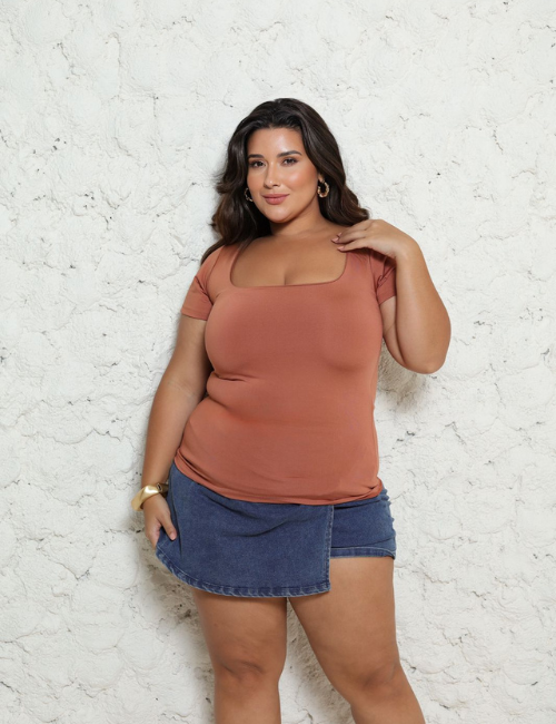 A Blusa Camila Plus Size é aquele básico nada óbvio que valoriza o colo e traz elegância pro look ✨