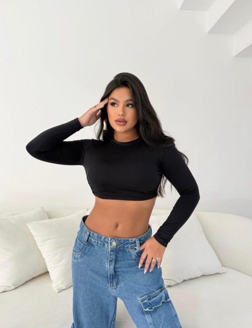 🔥 Cropped Feminino Manga Longa com Amarração – Puro Poder!