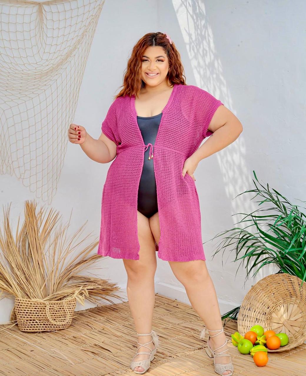 Saída de Praia Plus Size em Tricô de Malha – Leve, Fresca e Estilosa!